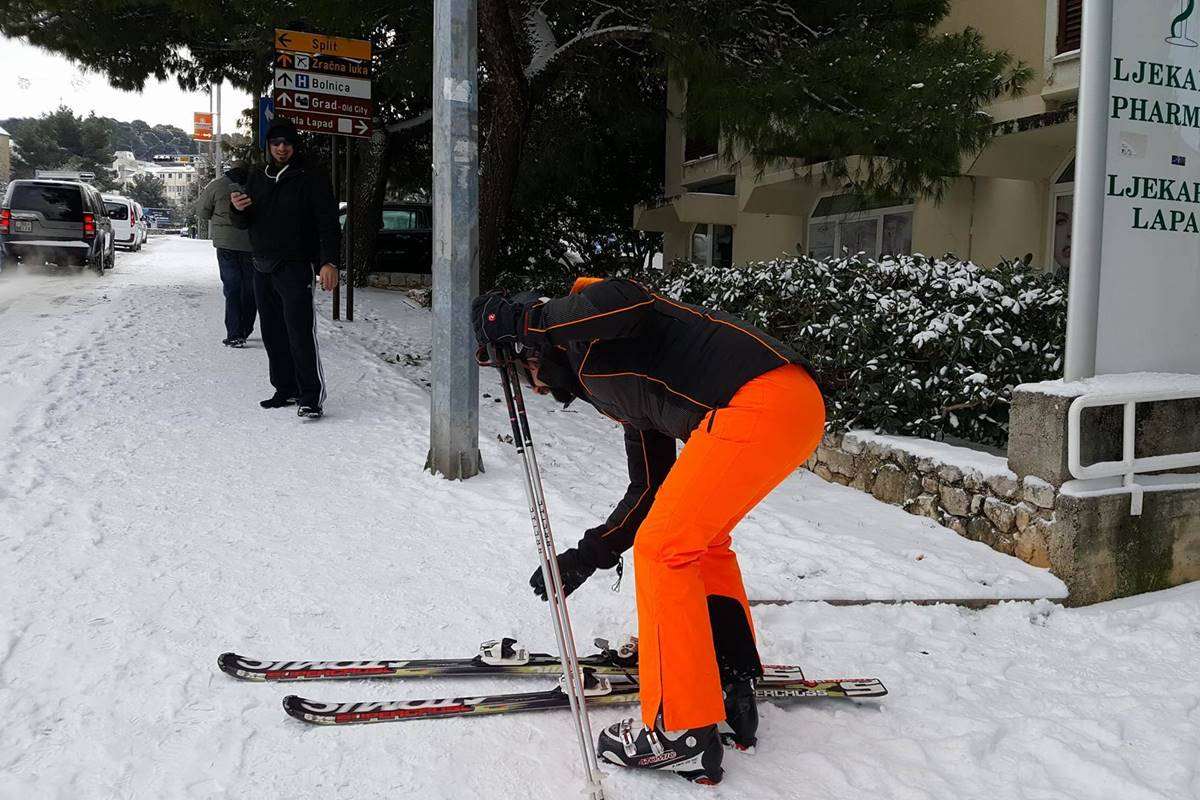 Zagreb has Snow Queen Trophy, but we have Snow King Trophy! However, with only one man, a brave skier who decided to go down the main street in Lapad and to enjoy some snow.