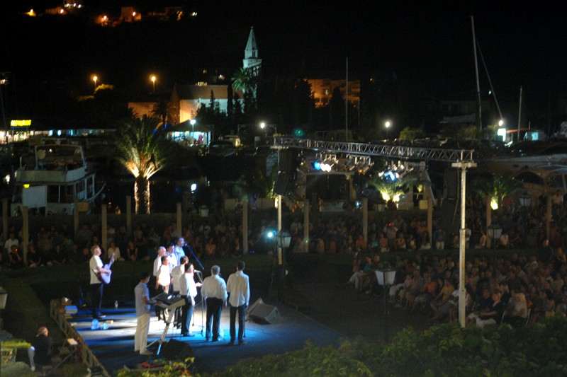 Good evening, Dubrovnik! Vocal group Intrade is here again, third year in a row in ACI Marina – Tomislav Bralić welcomed the audience at the beginning of the concert. A large number of people attended the concert of vocal group Intrade and Tomislav Bralić in ACI Marina.