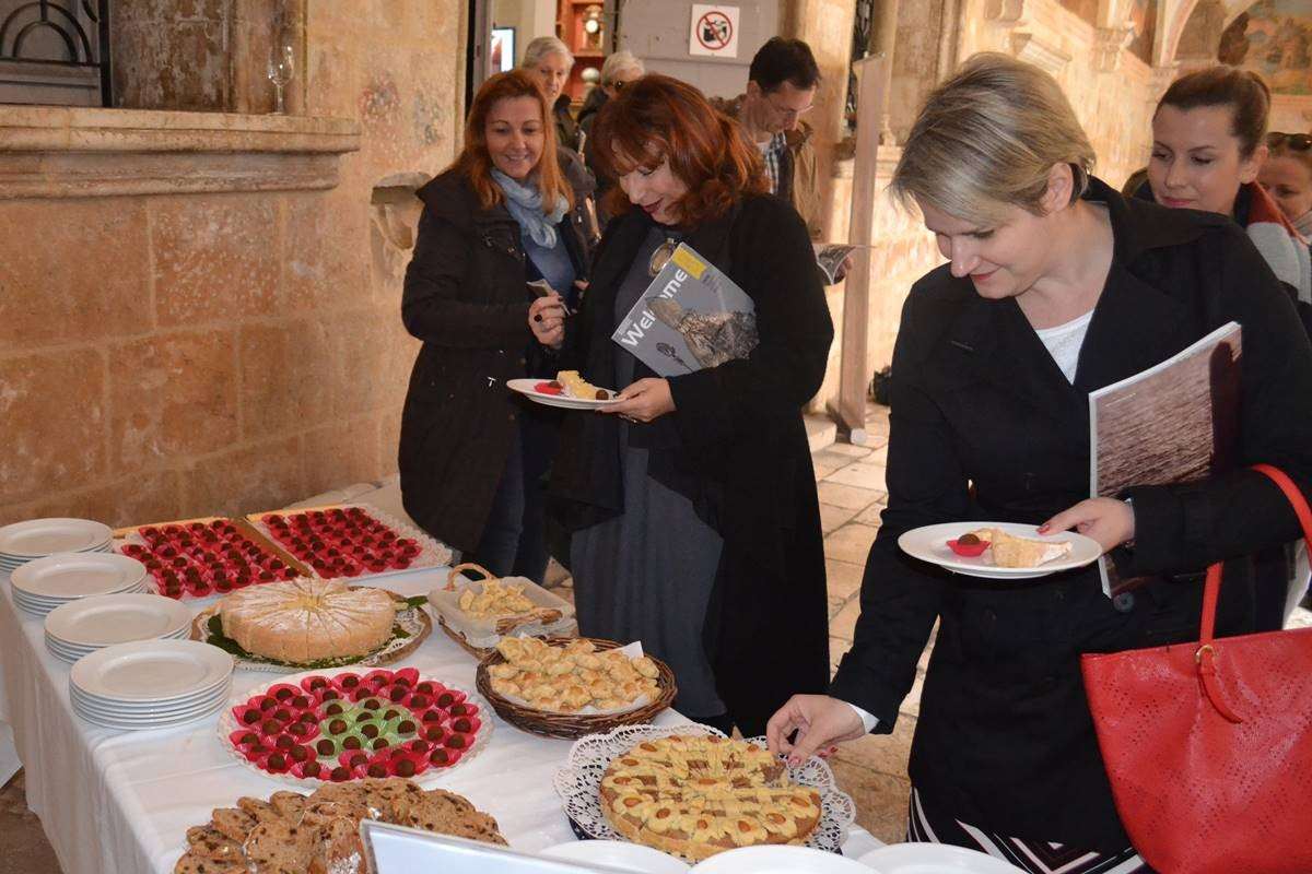 Presentation ended with the traditional treats dating from Dubrovnik Republic, such as cinnamon rolls, Marzipan cake, pasta frola with almonds, ‘prijesnac’, made by Jadranka Ničetić, author of the book ‘Dubrovnik chimneys’ about the culinary history of our area.