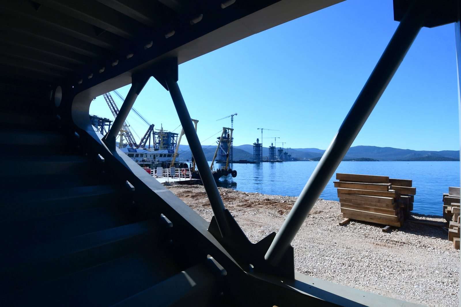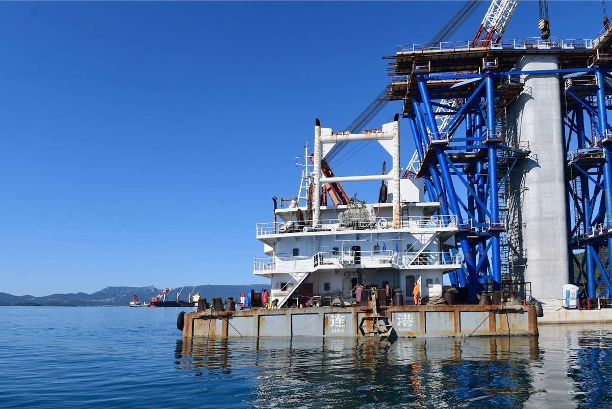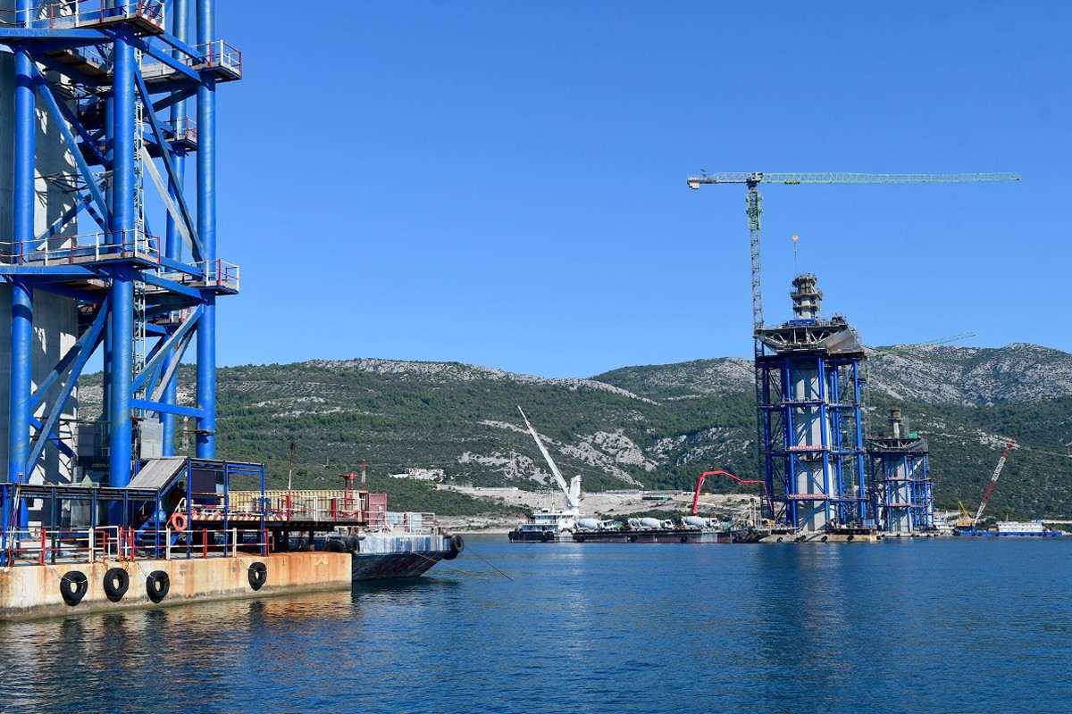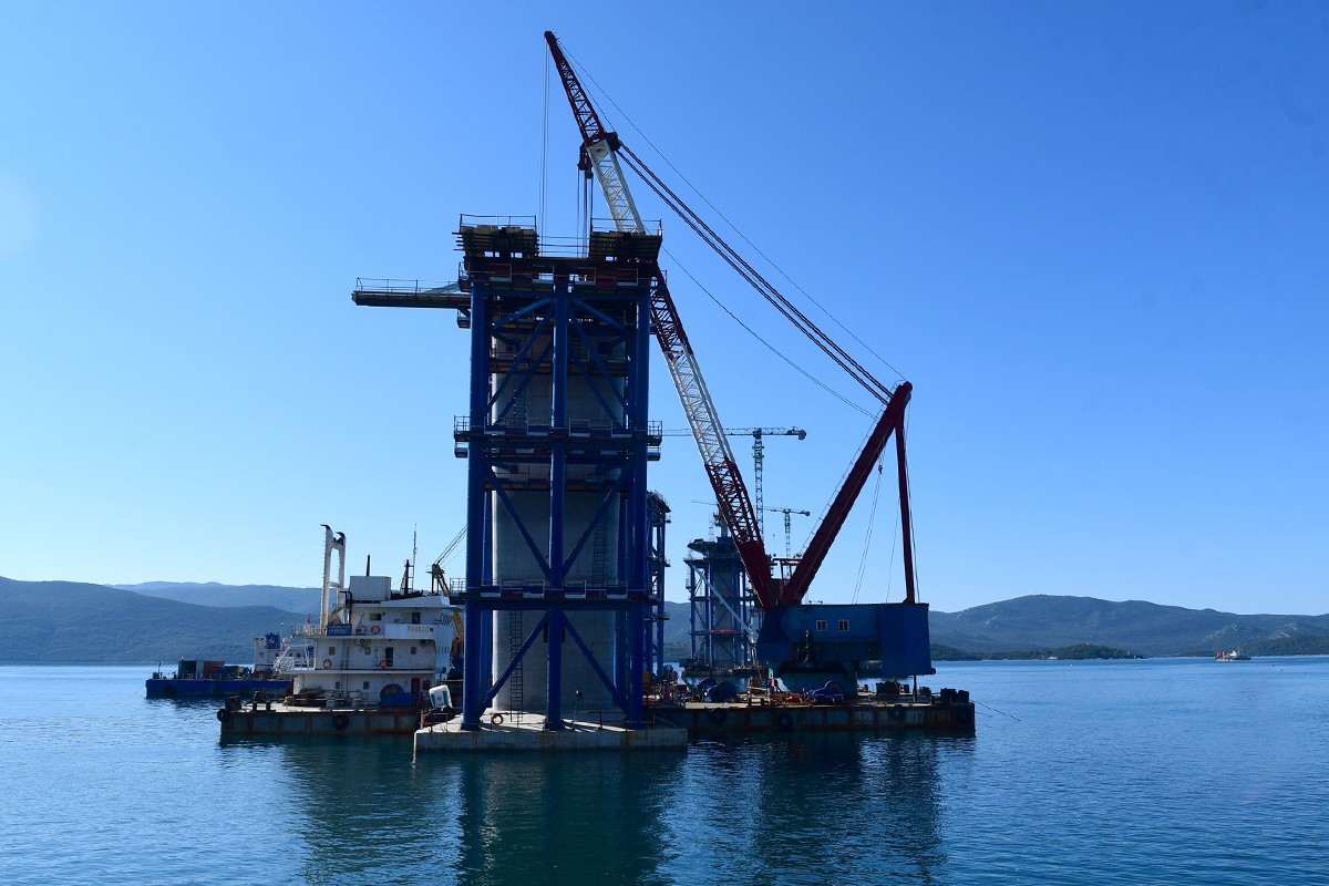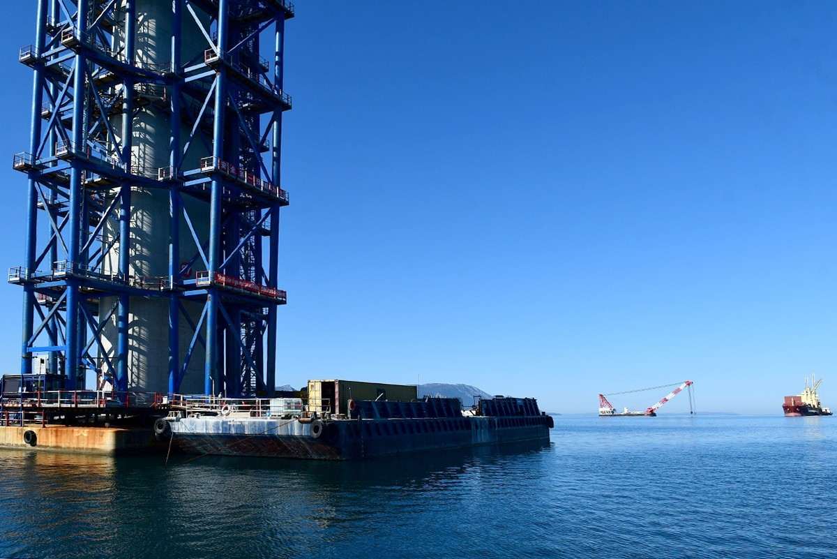 Despite the coronavirus pandemic, constructions on the Pelješac Bridge, the most important infrastructure project in the county, are going full speed. The Pacific Alert ship, which delivered 13 elements of the steel load-bearing structure, sailed into the construction site of the Pelješac Bridge in Komarno this Tuesday.