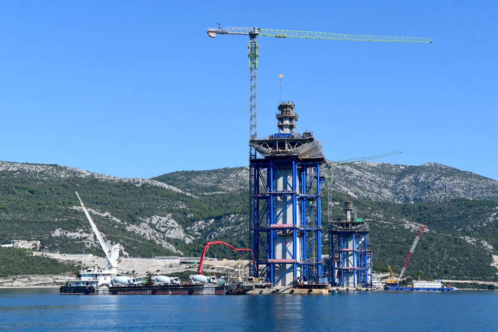 The total length of the bridge over the Mali Ston canal is 2440 meters. The bridge is a total of 22.5 meters wide and the traffic area on the bridge will consist of two pavements, and each pavement includes a 3.5-meter-wide lane and a 2.5-meter-wide stop lane.