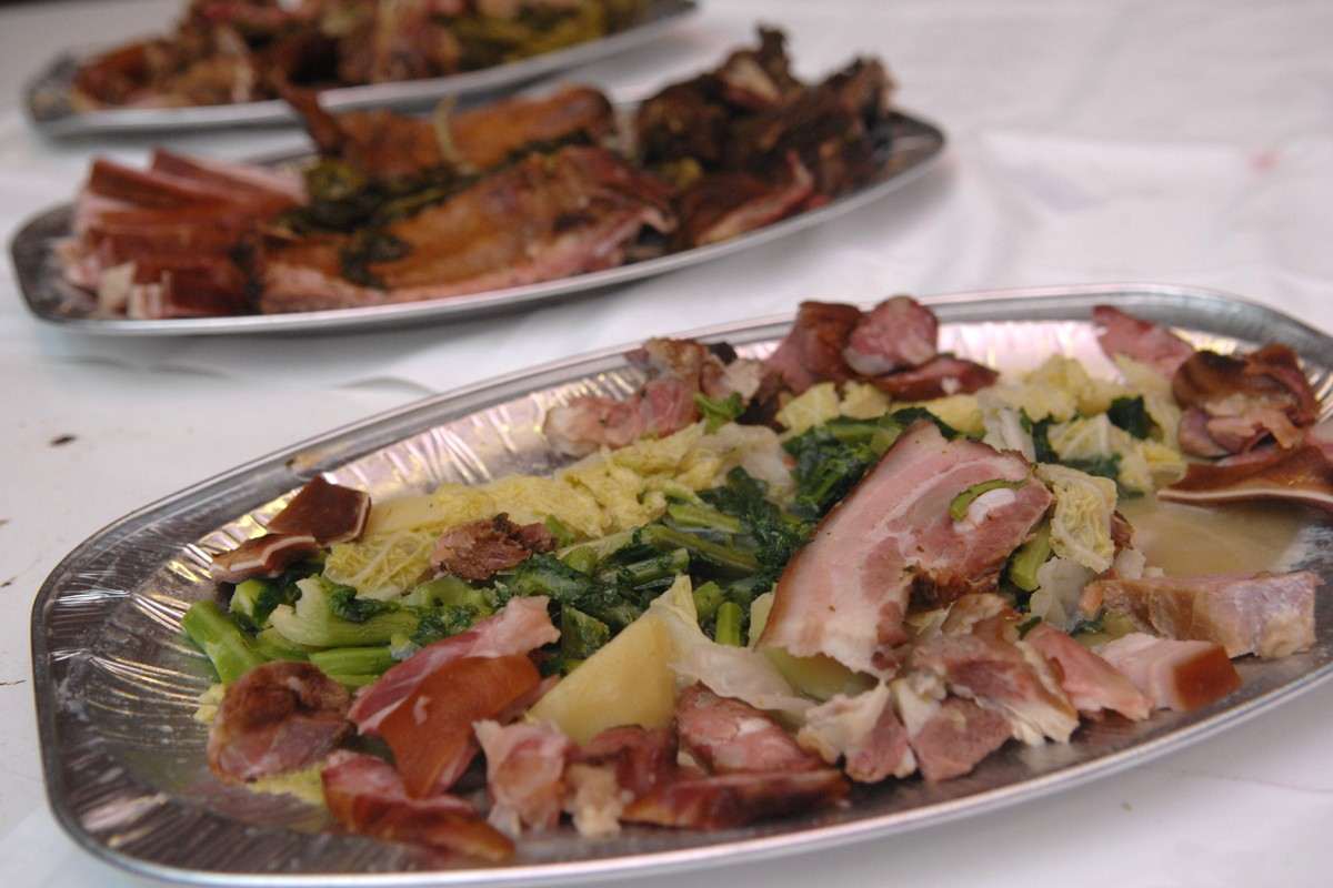 Ingredients: – 1 kg Smoked ham hock – 0,50 kg Bacon (home-smoked) – 0,60 kg Sausages (home-made) – 0,80 kg Cabbage (green-raštanj) – 0,50 kg Kale (verza) – 0,65 kg Cabbage (white,head) – 1 kg Potatoes – 0,15 Olive oil – 0,02 kg Salt