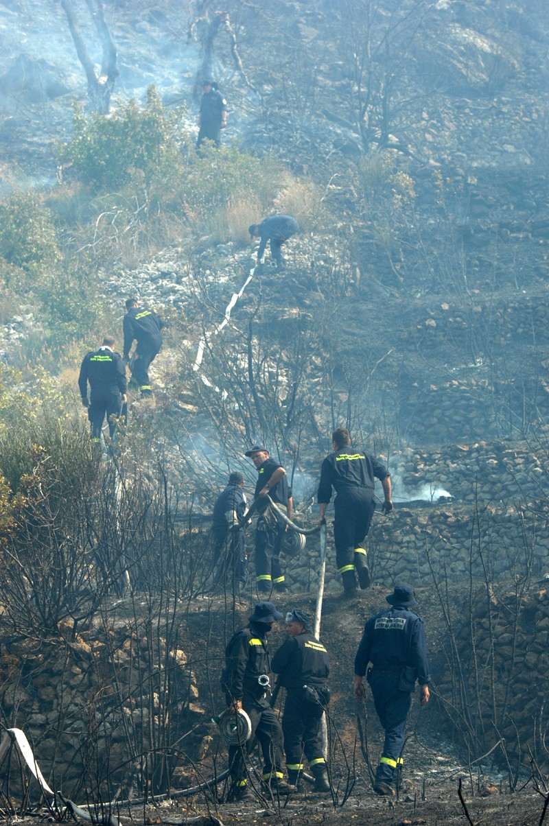 The fire broke out at about 2 o’clock in the early morning when the thunder hit the trunk in Plat, just below the new power plant of Croatian General Electric. The fire carried away by the strong wind soon threatend the houses just above the motorway in Plat. The residents, reminded of the scenario from 2007, water their houses by hoses in fear a spark may fly over from the fire. The whole village of Plat is in smoke and ashes.